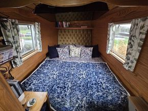 The boat benefits from recent upgrades by the current owners, including new pram and cratch covers by Amtrim (2025), new carpets and vinyl flooring, new washing machine (2024), new fridge (2024), and new radiator covers. The bedroom offers a generously sized fixed double bed, extensive wardrobe storage, and a large ceiling-mounted TV, creating a comfortable cabin. Propulsion is provided by a reliable Beta Marine 38hp diesel engine coupled with a PRM Delta gearbox, ensuring smooth and dependable cruising. ‘Eddy’ is now available to view at Swanley Bridge Marina, near Nantwich.