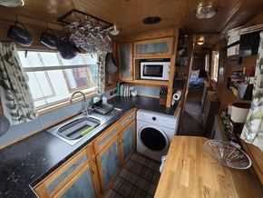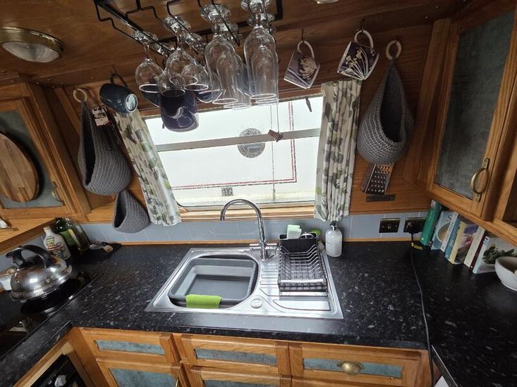 ‘Eddy’ is a 45ft cruiser stern narrowboat, built by Southwest Durham Steelcraft in 2002. The boat features the ever-popular reverse layout, with a warm and welcoming saloon as you enter from the stern. The saloon is fitted with a comfortable L-shaped seating area and removable table, which converts easily into a double berth for family or guests. The boat has been regularly maintained by the current owners, including recent blacking and engine servicing, providing reassurance to prospective buyers. Survey from 2024 available to view.