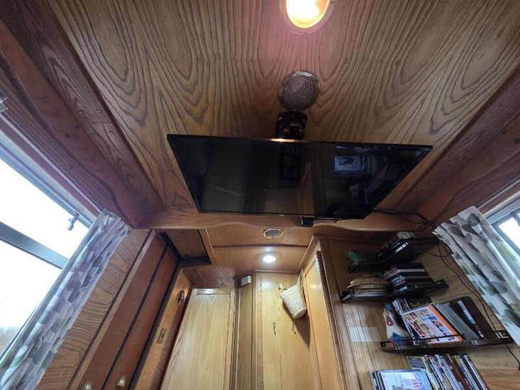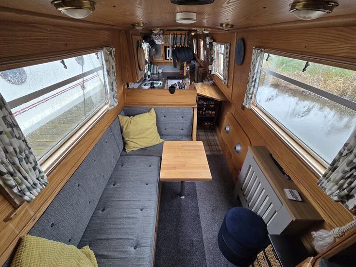 Saloon: Make-up ‘L’ shaped dinette, removable table, radiator with new cover, windows, curtains, corner cupboards with TV, Kenwood built-in radio.